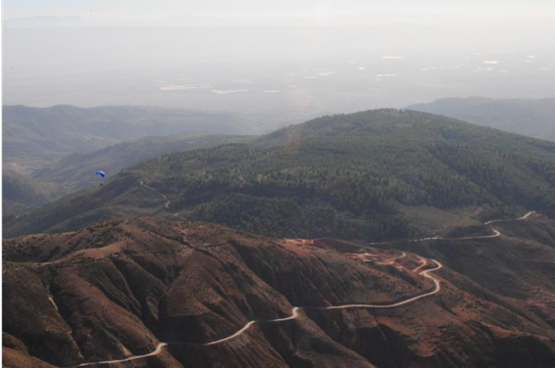 降落伞飞翔在丛山峻岭中(丫丫摄)