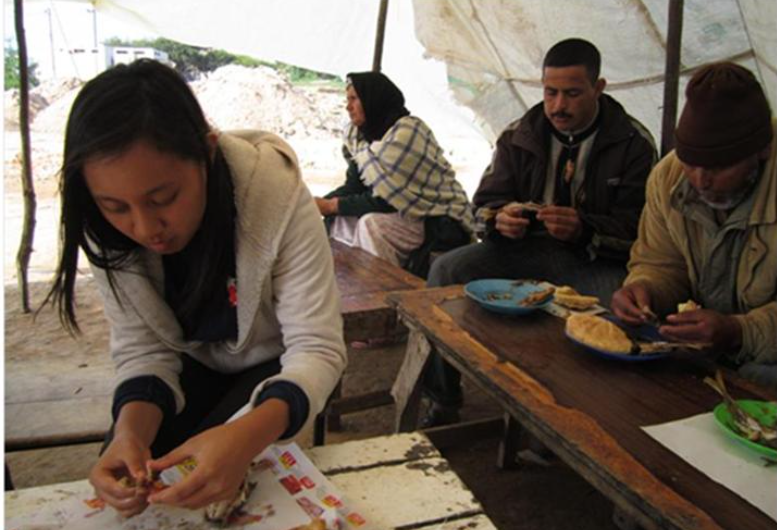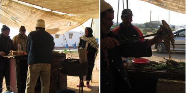 途中路过的一个城市叫萨非(Safi),是摩洛哥重要的工业城市。摩洛哥的磷矿储藏量占世界百分之七十,磷矿的加工和出口都是在萨非。萨非附近海滨有成片的新盖的别墅。我们和当地人聊天,问他们什么人可以买这里的别墅。他们说只要在萨非有政府的工作,就可以有银行贷款,就可以买别墅。由此可见他们的生活水平相对高。所到之处不管是旅馆饭店还是药店杂货铺,都挂着国王的照片,不像是强迫的,看样子是自愿的。当他们知道我们是中国人时,都说中国对摩洛哥好。(这也是我们没有买东西的原因,市场上的所有东西都像是中国制造的)一个小伙子说,他的梦想是去中国少林寺学武术,学五年以后回来当大师。这是功夫片风靡世界的结果。
