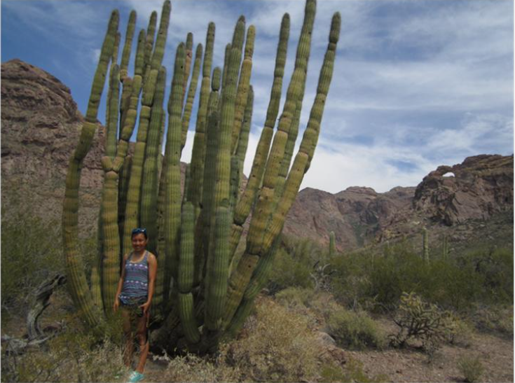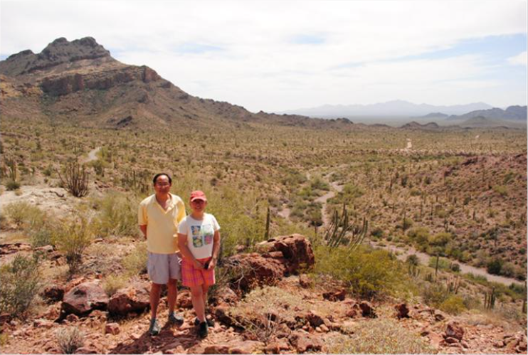 4月6日晚到达图桑市,按计划第二天4月7日去仙人掌国家公园游玩。图桑附近有两个仙人掌国家公园,一个就在市区,另一个远至二百多公里的西南部靠近墨西哥边境。我们决定去远的。去公园我们要在86号公路上往西开近二百公里。这条公路与墨西哥边境线平行,公路南边二十至五十公里就是墨西哥。路上车辆并不多,但每隔十分钟就会迎面开过来一辆边防巡逻车。一路上我们至少通过三个边防检查岗哨,往墨西哥去的时候不检查,从南面回来的时候不但停车看证件,看后车厢,还问丫丫:“他们(指坐在前排的我们)是不是你的父母?”我们感觉在这种壁垒森严的边境非法移民是插翅难飞的。据统计美国现有非法移民多达1千2百万。近几年人数是在减少,原因是美国的经济衰退和墨西哥的经济复苏。