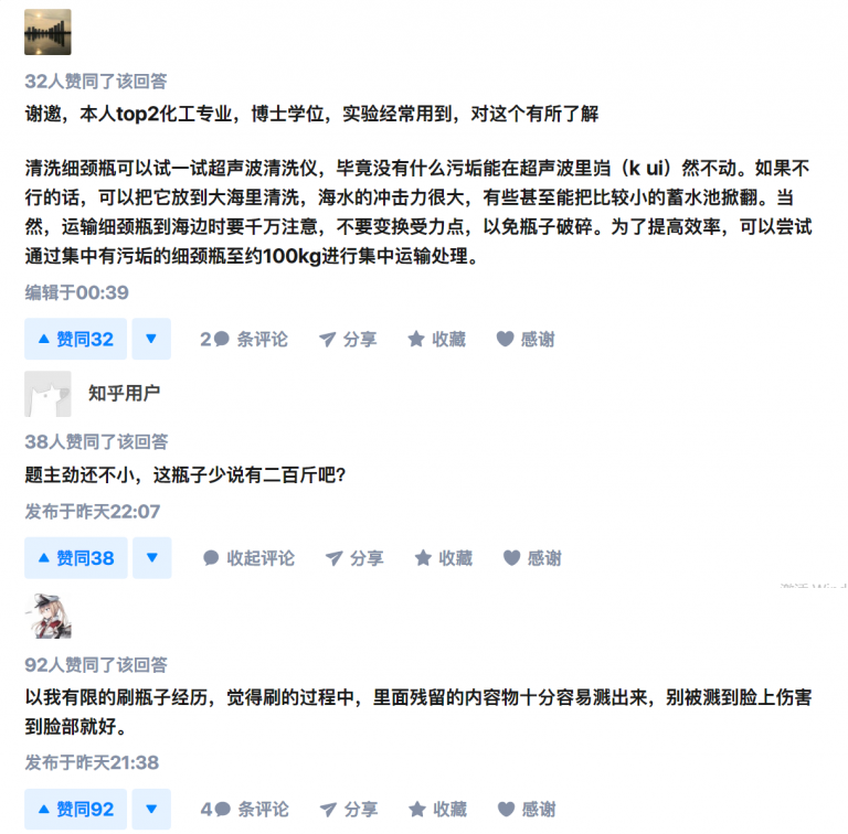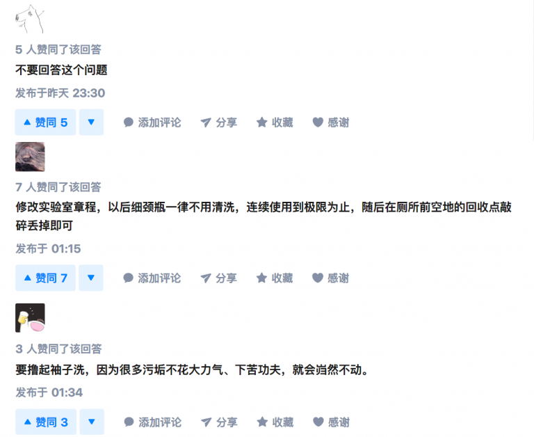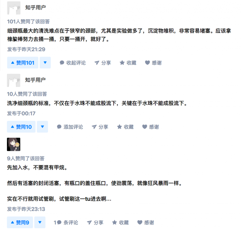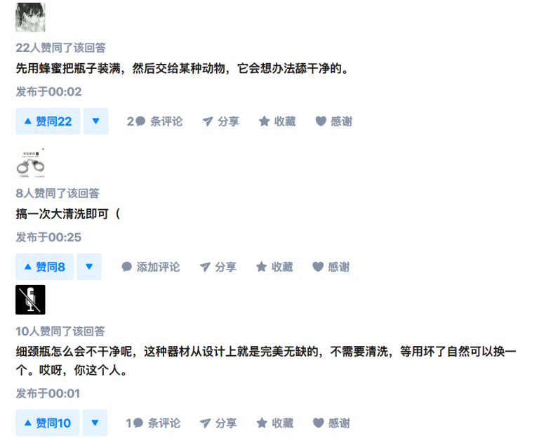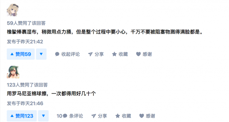 我的回答是:把棉球绑在小强(蟑螂)身上,放进细颈瓶中让小强爬上爬下去清洁。