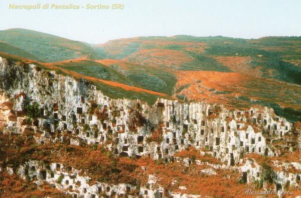 潘塔立克石墓群距锡拉库萨约25公里,位于伊布雷山(Monti Iblei)的高坡。潘塔立克的起源不详,不过公元前十三世纪至前六世纪,这个庞大的社区存在了六百多年,壮丽的石墓群就是在这一时期在岩间开凿而成,迄今发现的共有约5000座坟墓。这里还发现了公元前十三世纪沿海地区想要逃往西西里的意大利人避难所以及中世纪期间的避难所。