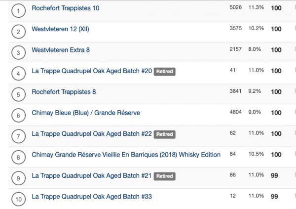 | 10 | Zundert Tripel | 10 | Westvleteren Blond | |