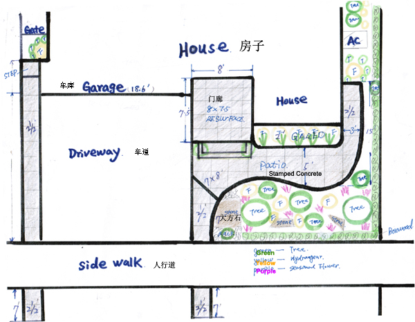 我的前花园从三年前开工,到现在才全面完工,从第一年多主花园算起,不计人工,只算花园的材料和植物(其中包括三年内补种的植物)第一期$2,800,再加上去年第二期的$1,000和今年第三期的$1,100,整个前花园共计$5,000(另外压花混凝土Patio的花费是$8,000,铸铁花园门$1,000,合计一万四千刀)。现在我的花园还是法式花园,早春以绿、白两种颜色为主,夏末粉和绿,晚秋则是菊黄、棕,橘红,并配有鹅卵石增加色彩及装饰性,花园不仅四季常绿,而且lg再不用饱受太阳及割草、施肥之苦,剩下的只有浇水和尽情的享受了。
