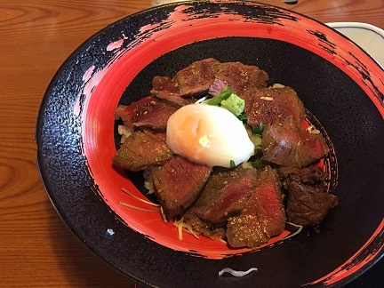 下山的路上惊见一家路边餐厅外聚集了大批摩托车手。果断停车入内,原来这里可以吃到阿蘇当地名吃‘红牛盖饭’,走过路过当然不会错过。