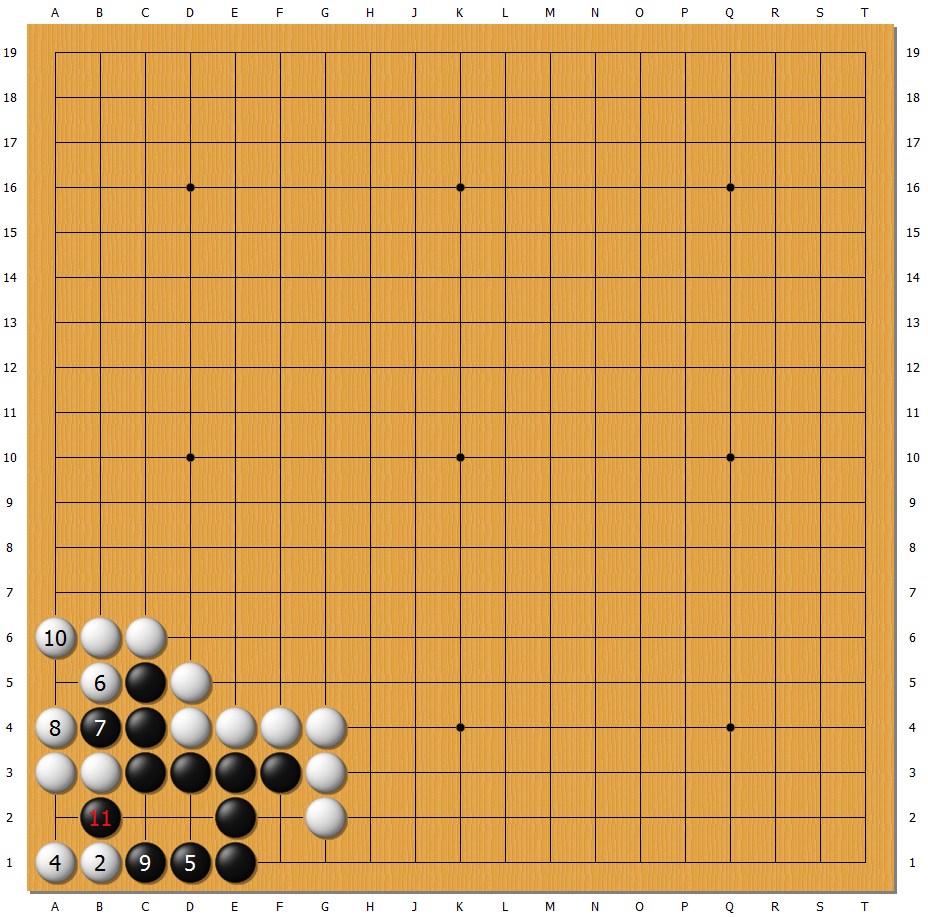 失败图1续 至此,白8脱先,黑后手死,惨不忍睹。