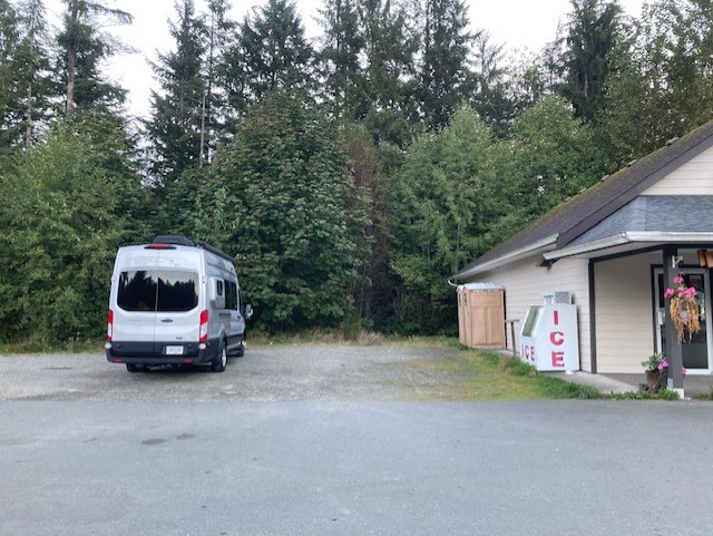 就在越来越忐忑之际,突然,路边出现了一块昏暗的灯牌,原来是一个小小的加油站,只是如荒废一样,无人上班。加油站的对面是一个很小很简陋的土质地面停车场,里面居然停了几辆不同规格的房车!我们赶紧开进去,有几个年轻人正背靠房车抽烟聊天,我们询问此处可否允许过夜,他们相视一笑,用调侃的语气回复:反正没写着不允许,你就当允许吧。此处还有一辆A 型大车,从窗户里我看到是一对老夫妇,这下更觉放心得多。我们上去跟老头打了个招呼,就把车泊在他们大A车的旁边,此时已经晚上九点了。我们房车出行的首次Boonducking (意即没有服务设施的野营)就这么不期而遇地降临了。