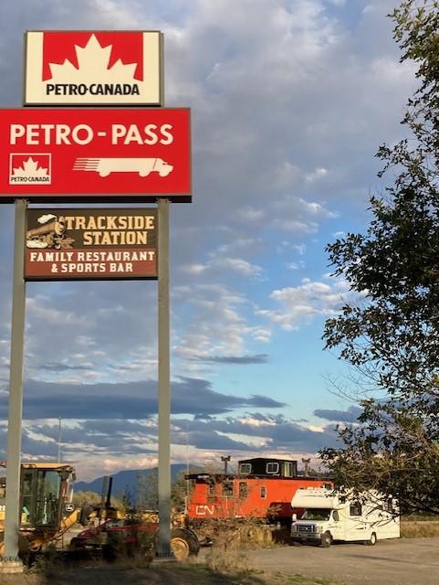 无论在Walmart还是在TruckStop过夜,都需要注意周围环境的治安安全,如果有homeless 在附近游晃,又没有几辆RV做伴,建议另外再找地方。我们跨越加拿大时,只在Truck stop 住过一次。尽管停车场一共有六辆RV,但旁边一辆背驼式RV的主人(一位白人小伙子)仍用锁锁住了前轮?,其谨慎显而易见。