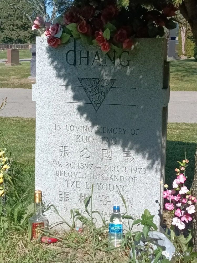 松山墓园很大,分为二十多个墓区,张国焘墓地在第五区,因常有国人造访张公墓,墓园管理人员都知道其墓地在何位置。我们周日到访,墓园管理人员休息,又没有墓园分布图或路标,加之墓区并非严格按编号顺序分布,我们开车转了十几分钟才找到第五墓区。但要在墓区数百个墓地中找到编号为2263的张国焘墓地亦非易事。编号大多不清楚,且不太有规律可循。赶紧上网搜索前人造访图片,得知其墓地位于道边,两颗蘑菇状柏树中间,一碑两墓,碑外侧刻Black名,内测刻张国焘名。即使有了这些信息,我们还是花了半个小时才找到,主要原因是两棵蘑菇状柏树只剩下了一棵,而我们一直在找两棵蘑菇状柏树。张公墓前有一瓶二锅头、一瓶矿泉水和几包香烟,显然还有国人并未忘记这位旧时代的风云人物。
