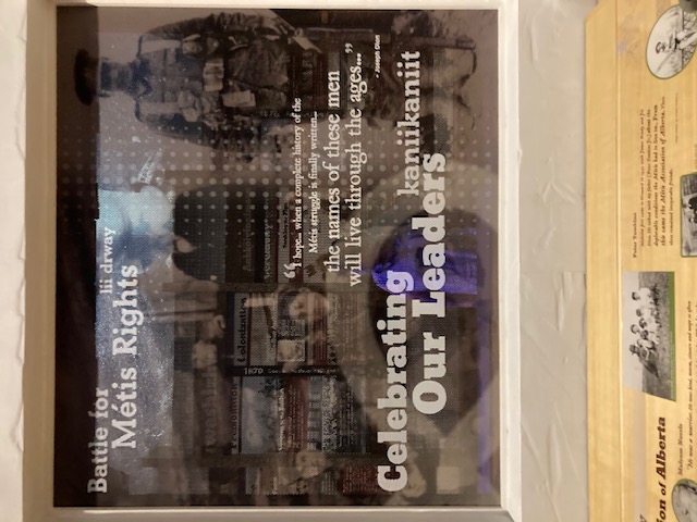 在这里,我们第一次知晓梅蒂人(Metis People)的由来与故事。他们是早期欧洲白人男性与印第安原住民女性的混血后裔。这一特殊群体最早可追溯到17世纪,但是直到1982加拿大宪法才将他们归入原住民的一支。之前的三百年,这些人既不被父系的英法主流人群所认可,得到社会阶层晋升的好处,也因无法归入母系的原住民社会而不能享受政策的保护和福利,可谓被长期边缘化的一个特殊人群。其历史沿革,文化变迁,身份认同,居住地选择都相应受到影响,形成与其他原住民不同的特色,很多悲情故事与爱恨纠结亦由此而生。图为梅蒂人妇女讲解员,她很详细地介绍了身为梅蒂人的她,自小生长的身份认同和族群权益争取的漫长历程。