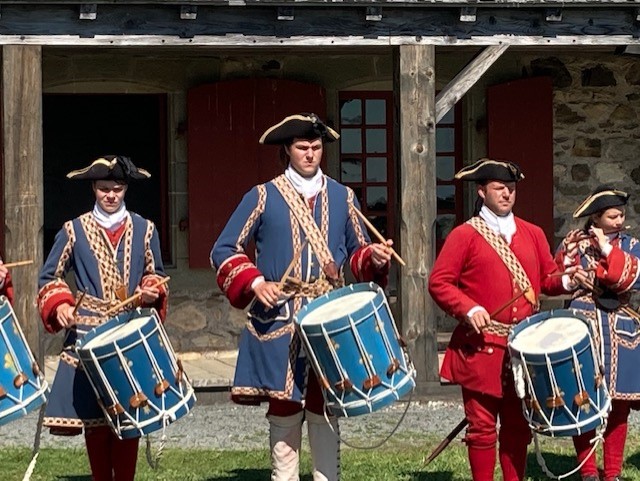 与加拿大其他国家历史景点一样,这里有很多穿着历史时期服装的讲解员为游客服务,他们扮成军人、商贩、居民、高管、仆人等。讲解员们都是流利的英语和法语,其中就有前述的阿卡迪亚人(Acadian)。这些讲解员非常敬业和专业,30度的高温下身着厚重的道具服装,不厌其烦地讲解,表演军乐,示范如何使用18世纪来福枪,最后真的装填火药放了一枪,当然用的是空爆弹。