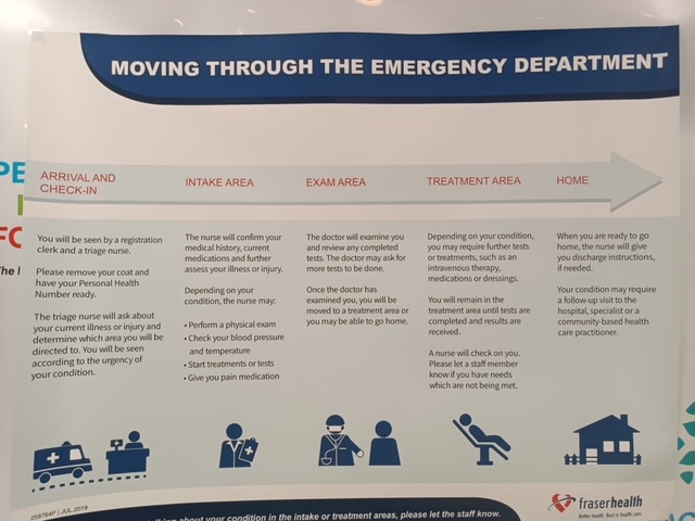 也是机缘巧合,前天下午观知视频刚刚请来BC省卫生服务局暨BC儿童医院的高级经理周楠先生,为我们分享他对大家关注的BC医疗健保的知识与见解。他的分享内容之一就是和急诊室相关的话题,结果我第二天就来亲身体验了,顿时感觉自己不是急病来求诊,而是来做卧底调查。