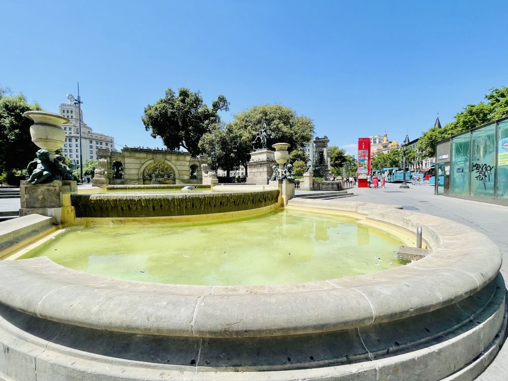 兰布拉大街北侧尽头是加泰罗尼亚广场,面积5万平方米,以喷泉和雕塑著称,並聚集许多鸽子;数条重要街道交汇于此,是城市购物、娱乐和交通中心,广场周边高楼林立,商店毗邻,还有各种餐馆和酒吧。