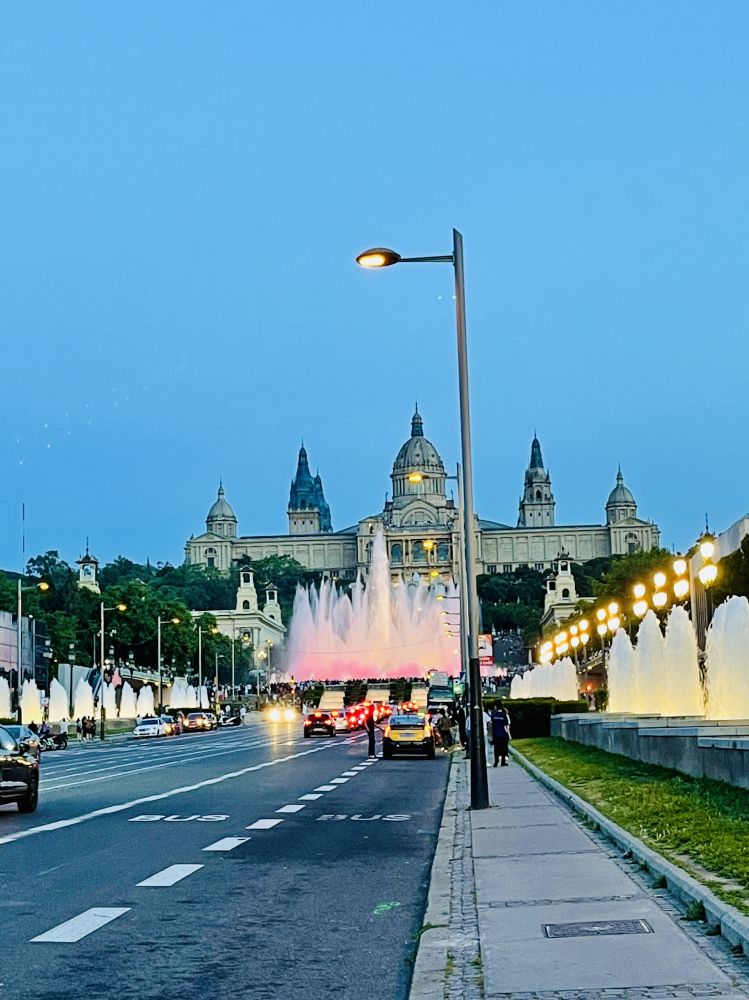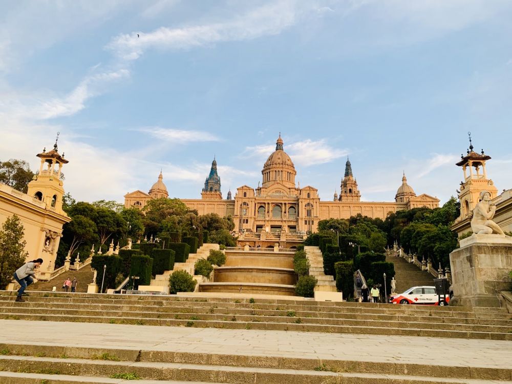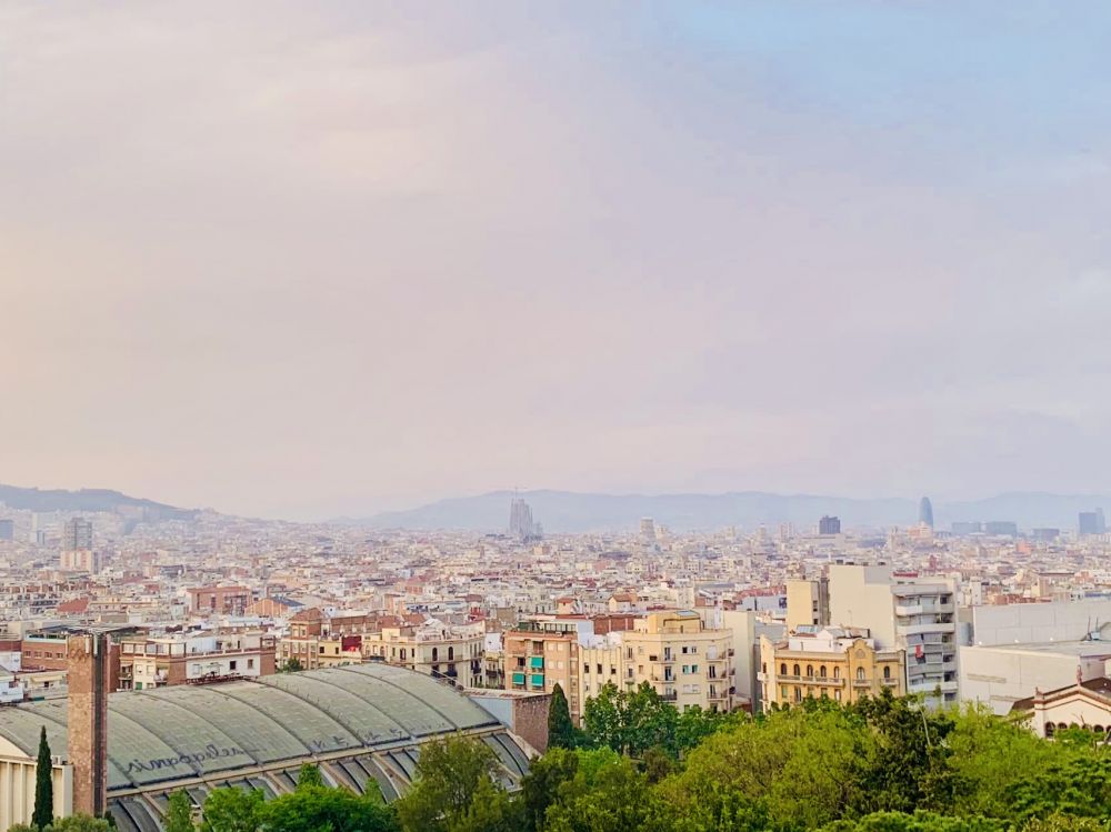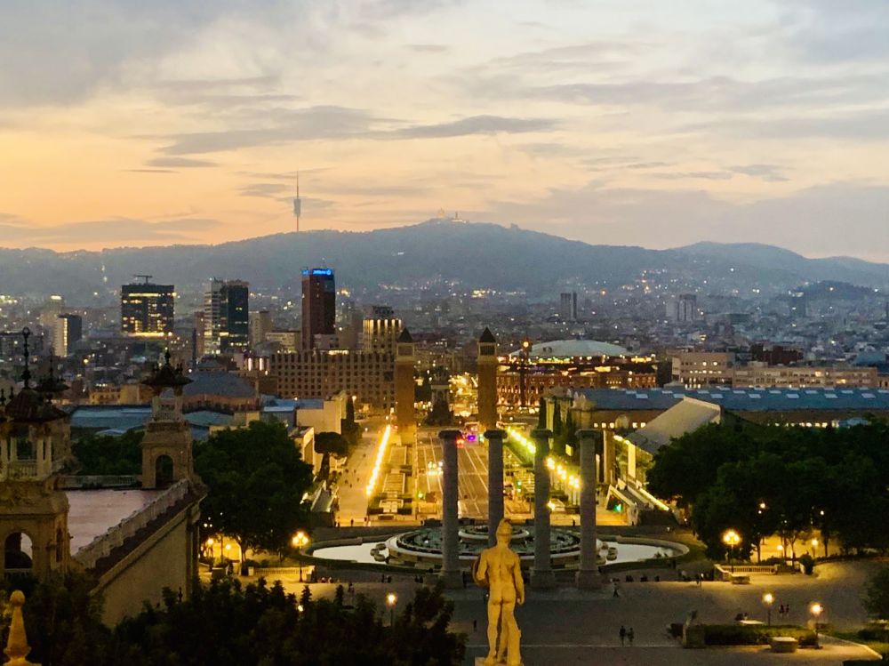 国家博物馆前面的平台可以俯瞰整个巴塞罗那,视线能一直延伸到长长的海岸线,远处的科尔塞罗拉山横贯城市的东北部。