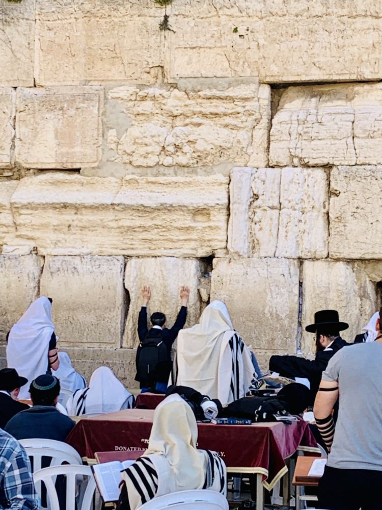 犹太教徒们面壁肃立而站,或手捧经书念诵经文,每次念到上帝的名谓的时候都会点头以示尊重,或扶墙贴面啜泣、亲吻石壁,底部巨大的岩石已经被磨的十分光滑。
