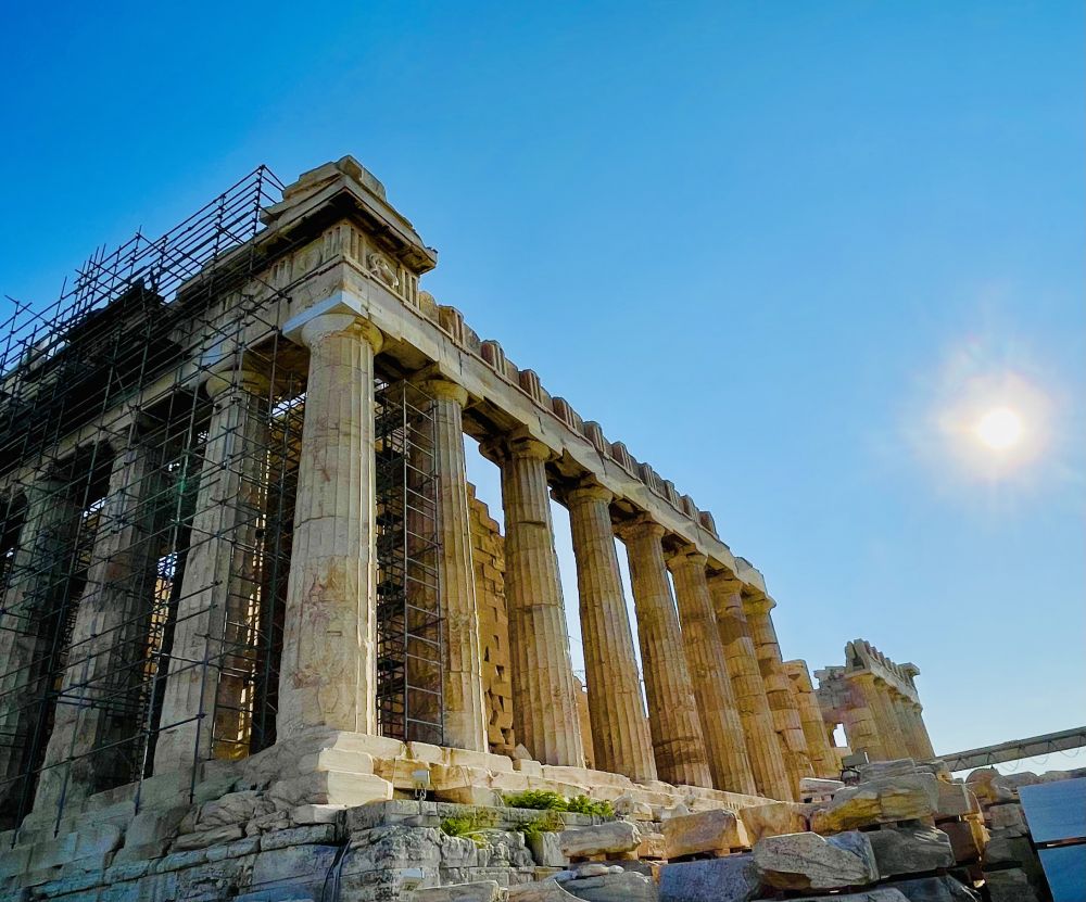 站在卫城博物馆的展厅向外眺望卫城,阳光洒在帕特农神庙石柱上,石头仿佛在低语古希腊的智慧。卫城不仅是雅典的骄傲,更是人类文明的瑰宝。