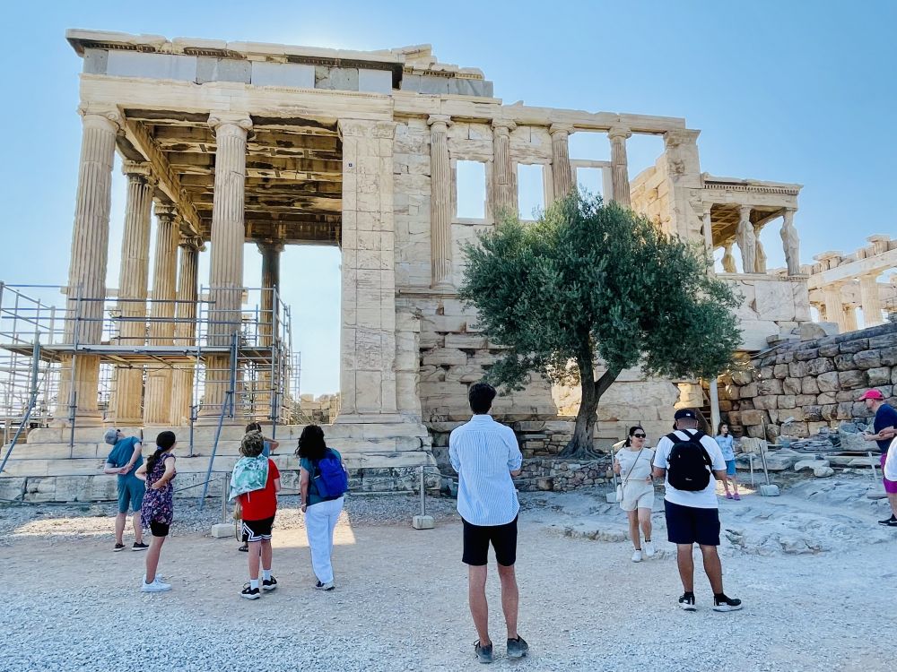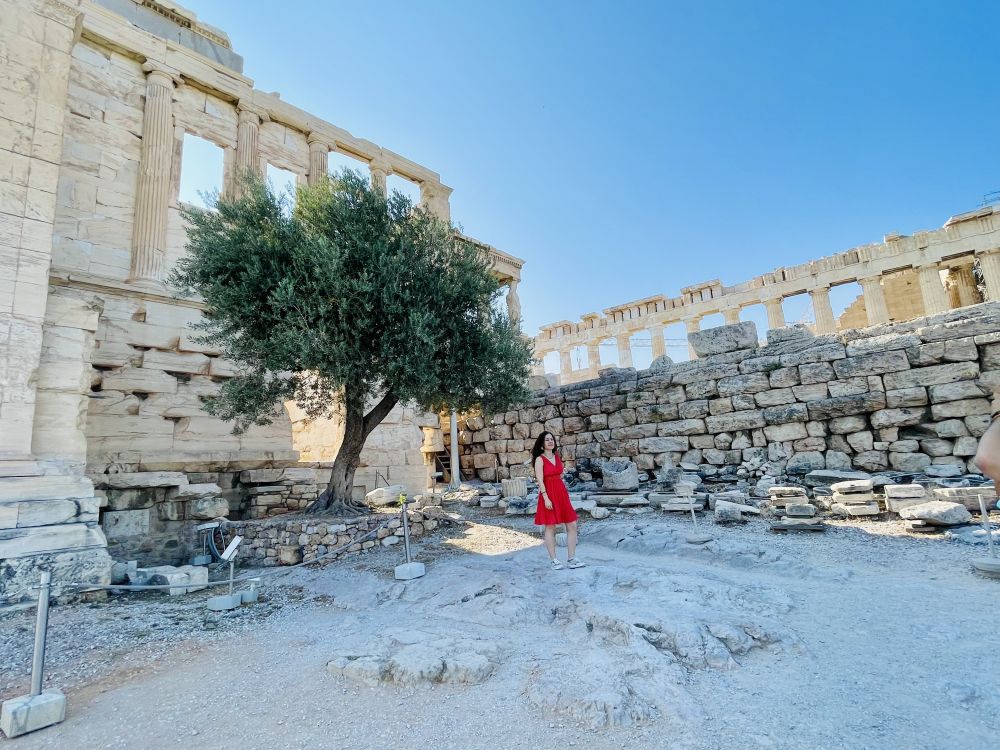 传说这里是雅典奥运会娜女神和海神波塞东为争做雅典保护神而斗智的地方。神庙西边这棵象征雅典娜送给雅典人民的橄榄树,是一百多年前奥托国王的王妃种下的。