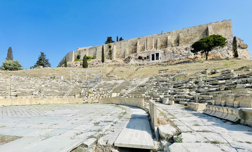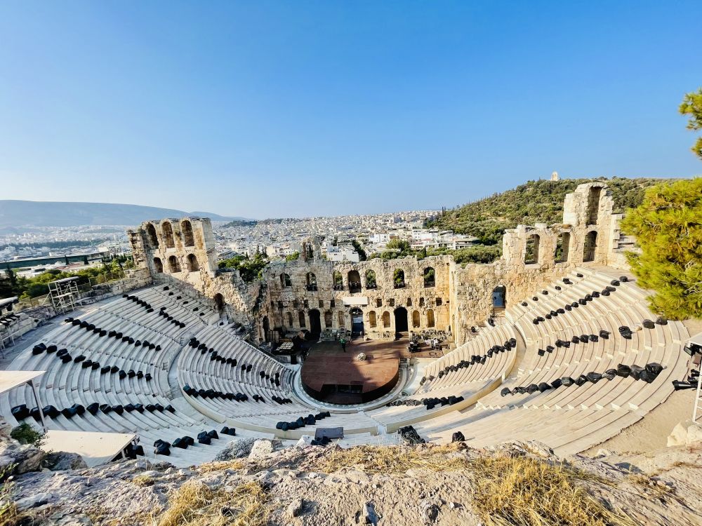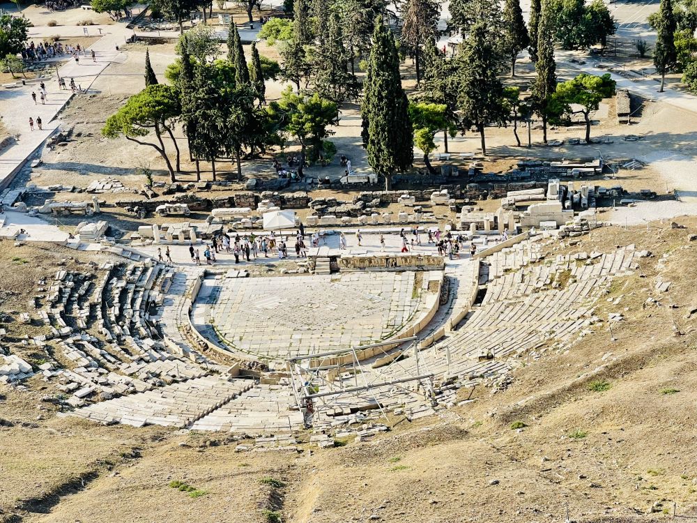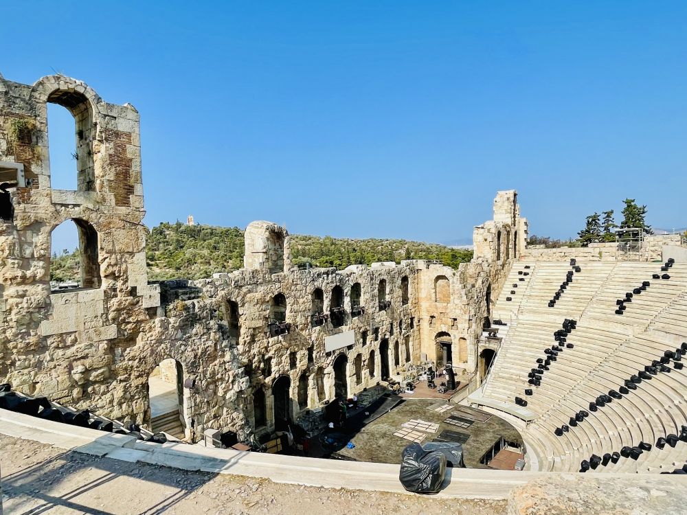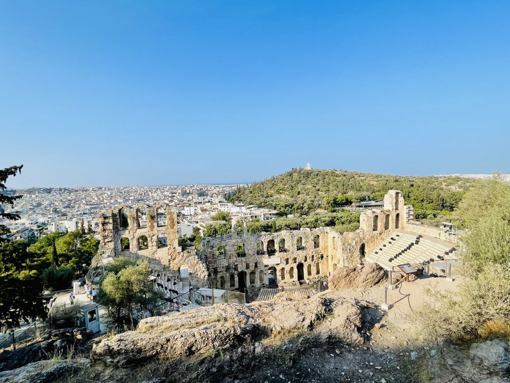 从这座剧场向远处望去,可以看到卫城西南方向的菲洛帕普山和山顶上标志性的纪念碑。那里是远眺卫城全景的好地方。