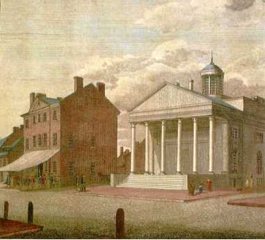 虽然都有走马观花的意思,上点心还是看出点道道。比如独立厅、木匠厅和美国哲学学会的建筑都是当年英国乔治时期风格,是北美殖民地遵循英国的传统,而独立后,也就二三十年里,建起的第一银行、第二银行和招商中心,风格截然不同,被称为希腊复兴式建筑,是美国建筑师们开始寻找的自己风格,他们学习古希腊建筑特点,一方面标榜民主精神,另一方面是和英国在艺术上“告别”。