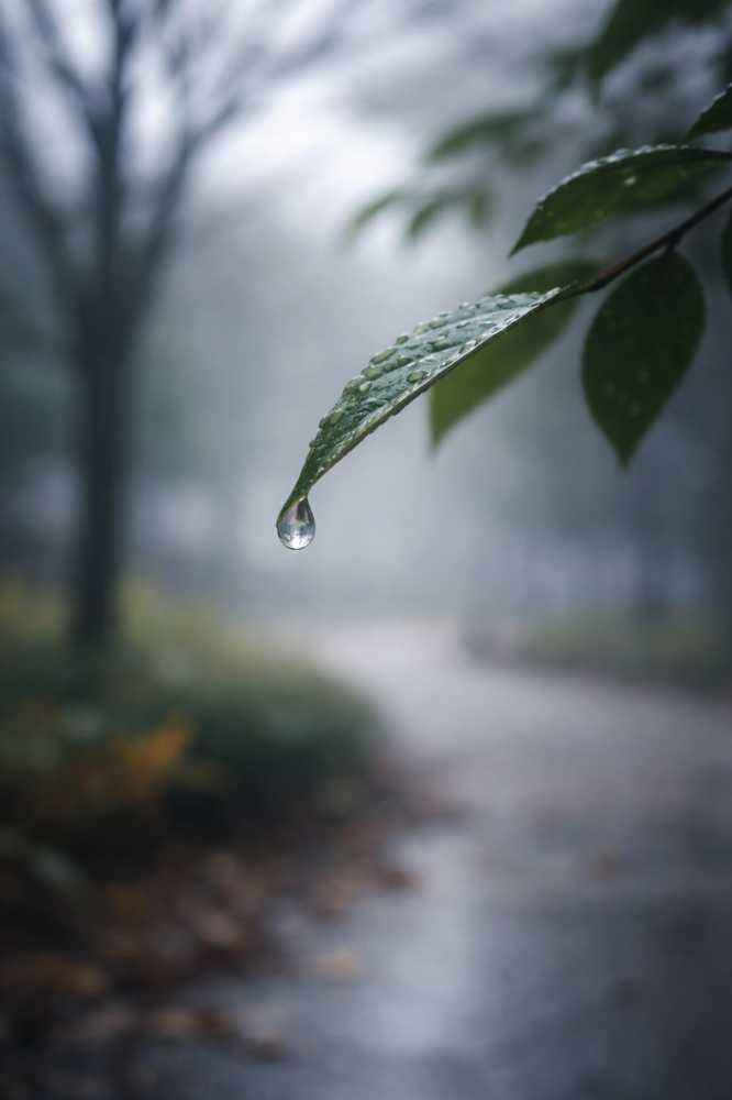 等待一颗叶尖上的水珠