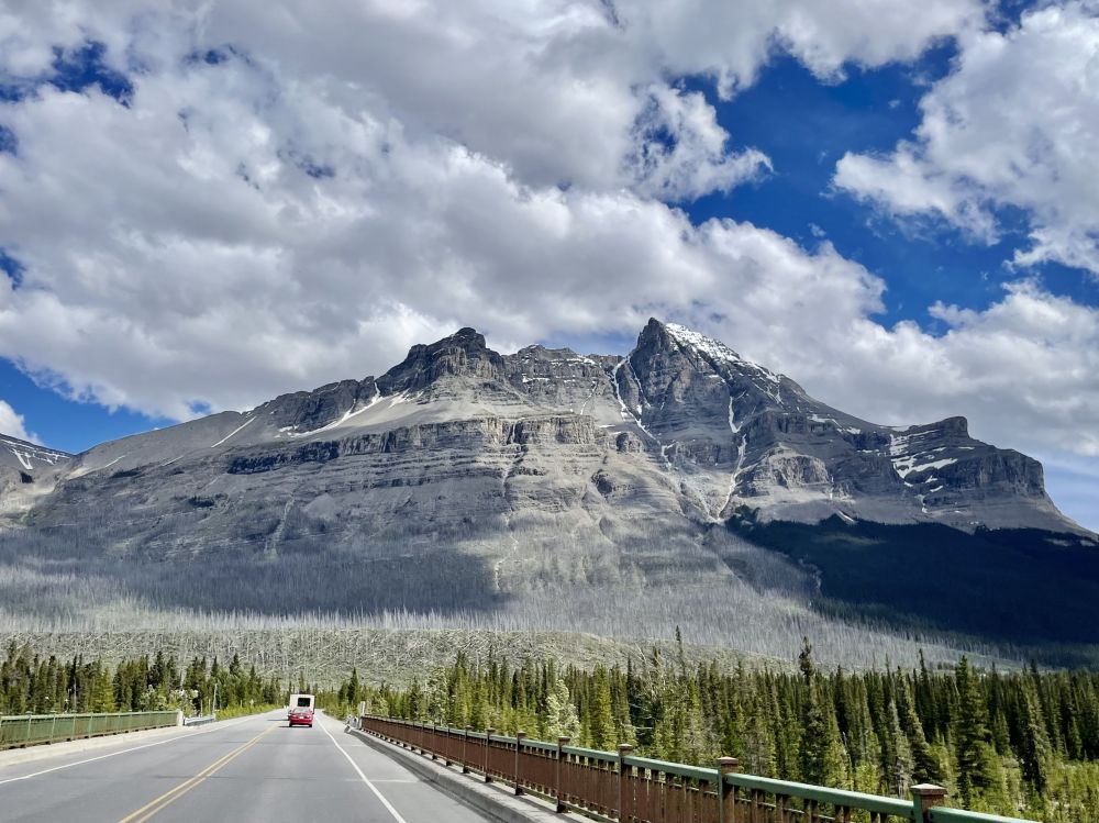 我自己与熊的相遇则波澜未惊。几年前去班芙(Bannf),开车在冰原大道(Icefields Parkway)来回巡湖访景。突然看见右前方石壁上两团黑绒球往上爬,不到一分钟,熊与人车就已擦肩而过。这样挺好,我们不需接触,各自安好。
