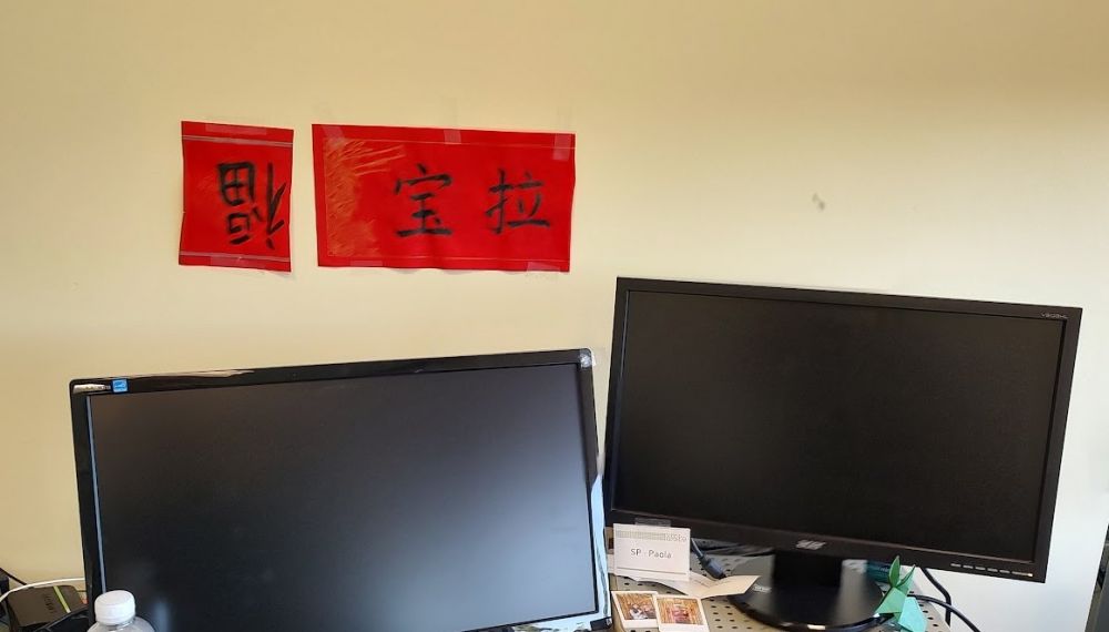 当然,宝拉对中国的文化基本没有了解。所以,当我参加完活动回到自己的办公室时,一眼看到宝拉贴在墙上的对中国文化的错位的张贴,忍不住哈哈大笑起来。宝拉有点被我笑的莫名其妙,在我解释之后,她很开心的接受了我的劝告,把“福”字和她的名字贴到了符合中华文化的“正确轨道”上来。