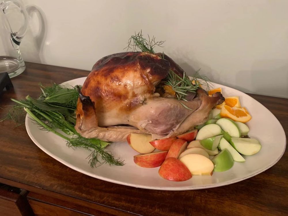 印象很深刻,那个瞬间,心有点悲凉,就是觉得委屈。我晚饭也没吃,赶紧去镇上,看看 whole food 是否卖新鲜的火鸡。路上,我难得给老大打了一个电话,就是那个难过啊。老大不错,就听着,也没说话,但够了。感恩的是,我买到了,我连夜腌制,这事就算 翻篇了。
