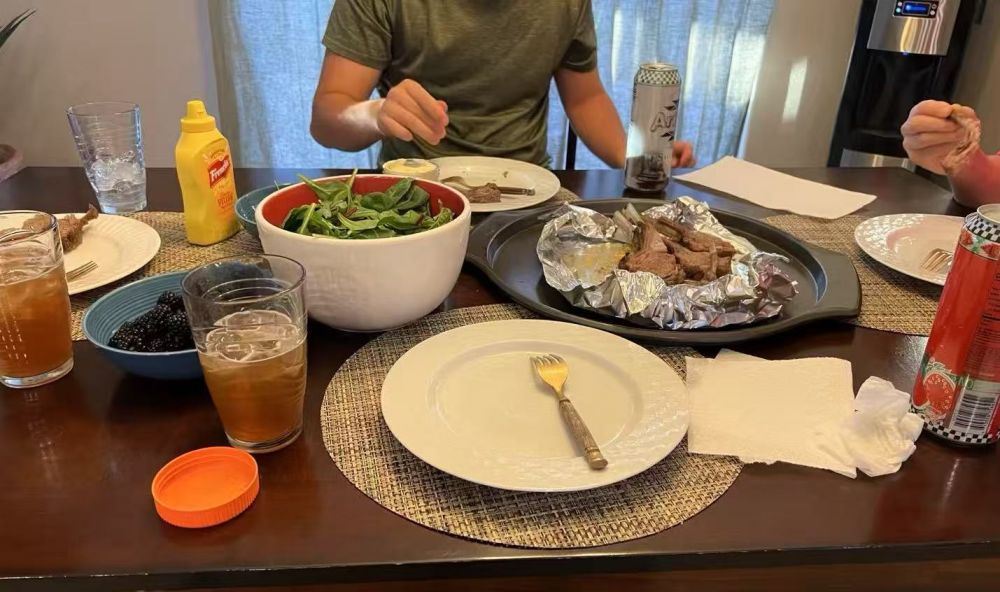 (旅行中的晚餐。拉斯维加斯民宿。)