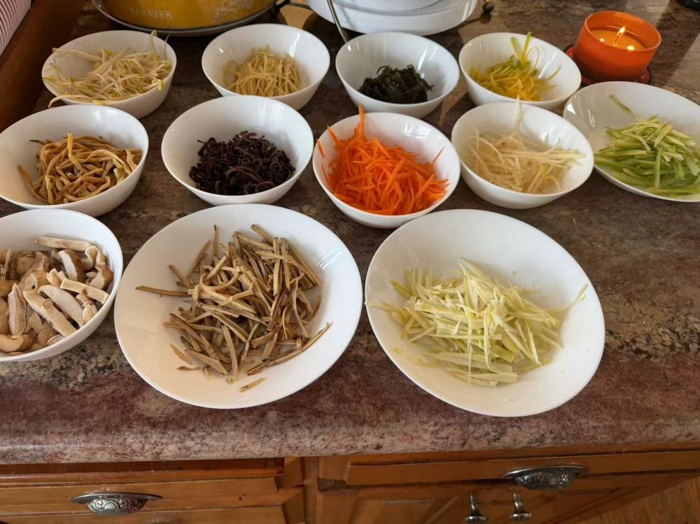 今年的除夕夜在周一,我们家放在在周日晚上。虽说我和先生烹饪水平很一般,但老美朋友都是爱来我家的。除夕夜聚餐几乎成了传统了。三家老美是必到的,都是十来年的朋友了。P 更是 20 年的朋友。