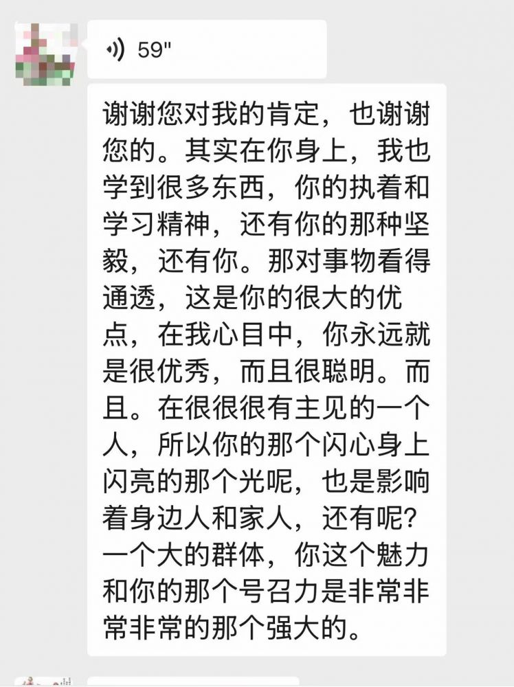 梁小姐每年都会第一时间送我祝福。简直是反过来了。今年我因为忙,她连续给我发了大年三十的,初一的,我都没有看到,自然也是没有回复。后来看到了,感到抱歉,回复了两条语音过去。谢谢你,始终将我放在心上。然后,她洋洋洒洒,普通话,广东话,给我来了好多条。一如既往的对我的肯定、欣赏、祝福,有点像年终总结。哈哈。