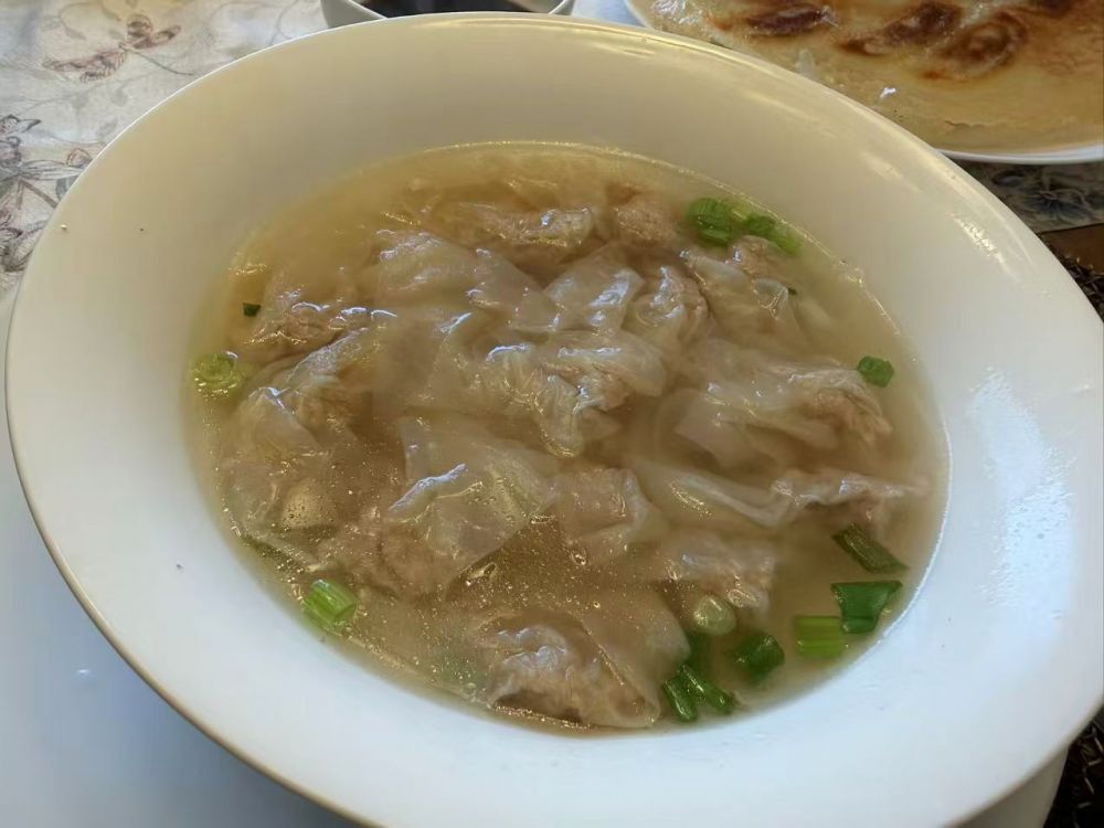 (早餐的一碗鸡汤小馄炖,冰花煎饺,是我心中温暖的家庭小环境。)
