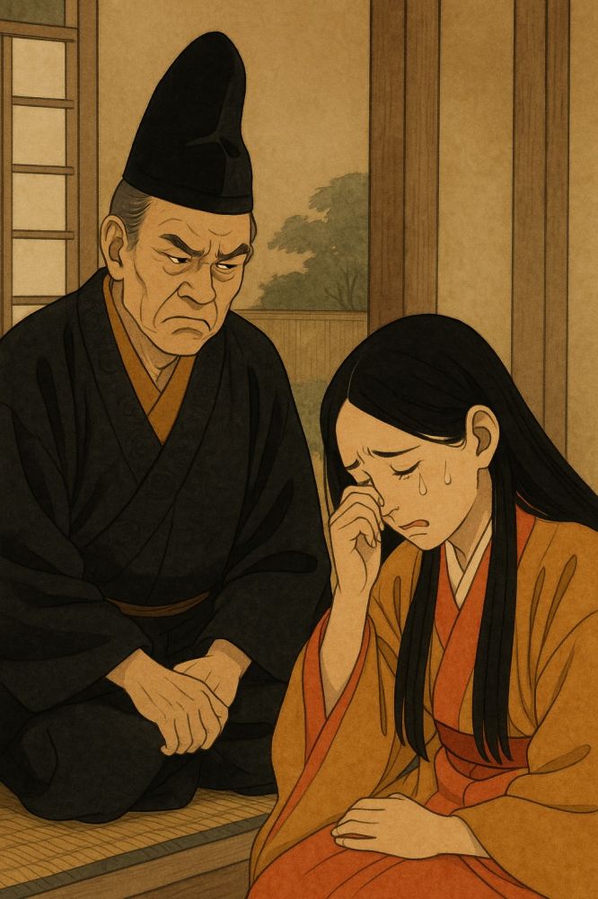 第二十九回“行幸”:冷泉帝即位后不久,于十二月举行大原野行幸。随驾队伍经过嵯峨山庄,源氏等人小住设宴。正居于六条院的玉鬘,远远隔帘偷望随行的队伍,首次见到自己的生父内大臣风仪堂堂、神情威严。虽无认亲机会,但血缘唤起了她心中深切的震动与敬仰,也带来难以言说的悲喜交集。源氏过去他对玉鬘虽有暧昧之意,但此刻却开始生出纯粹慈爱的情感,从原本隐晦的欲念中醒悟,转而决心为玉鬘安排真正合适的归宿,成为她的庇护者。