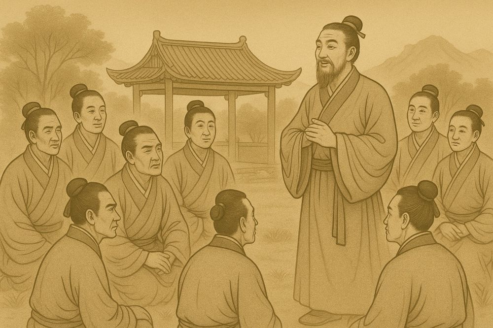 剿匪过程中,王守仁体悟:“破山中贼易,破心中贼难。”对小寇示以仁义,对顽寇恩威并施。成功安定一方后,他复归讲学,编刻《朱子晚年定论》,继续推进心学。山寨招抚,寇众放下兵刃,王守仁从容劝导。王阳明功成身退,屡次上疏请辞,晚年多归于乡间。虽体病缠身,却依旧讲学不辍,弟子云集门下,传承心学。他在讲学中提出“致良知”的核心义理,教导弟子反省自心,不忘本真。他的精神风貌,不在权位,而在一颗常明的良知之心。即使风烛残年,仍以传道为己任。
