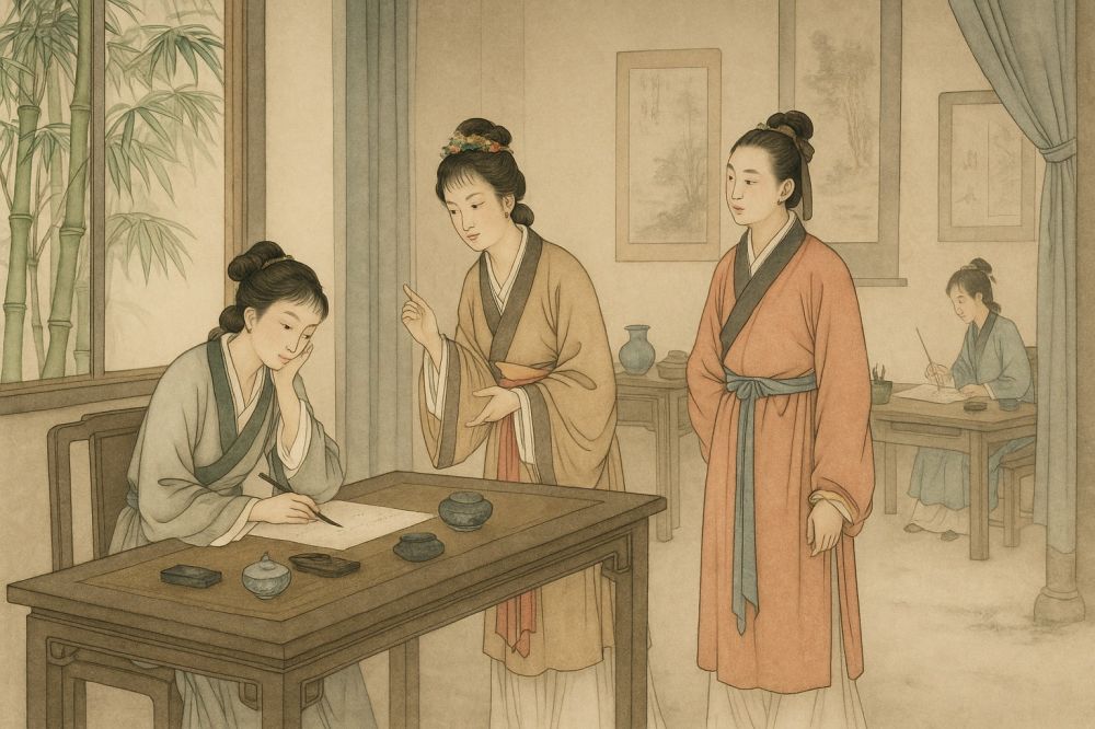 黛玉昨日在宴会上念起了《西厢记》词句,宝钗与黛玉私下交谈,告诫不要再读此类书籍,以免移了性情,黛玉默默点头称是。海棠社惜春告假,说是老太太让她作画。大家引出刘姥姥的话头,黛玉送她“母蝗虫”三字,引得众人狂笑。红楼梦境中,最真之情,常在无声一叹。