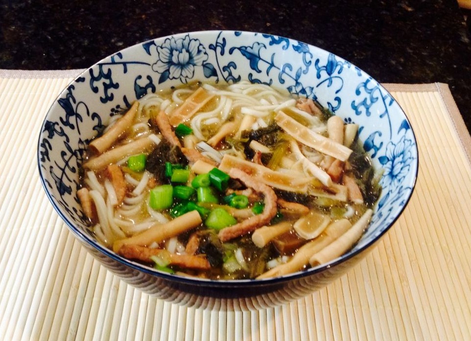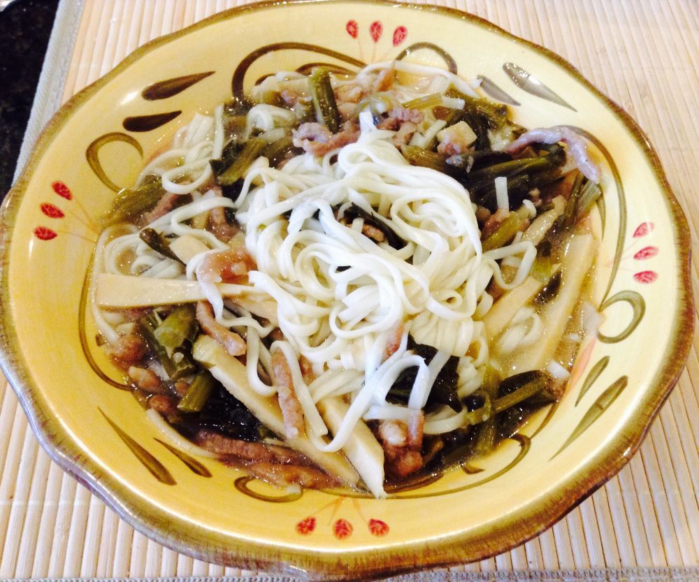 中国超市渐渐丰富起来,如今在美国也能买到时令鲜笋,而我学会了自己腌制雪菜。当翠绿咸香的雪菜、脆嫩的笋片、柔滑的肉丝在口中交融,面条裹挟着鲜美的汤汁滑过喉间,那种满足感总能瞬间抚平思乡的愁绪。