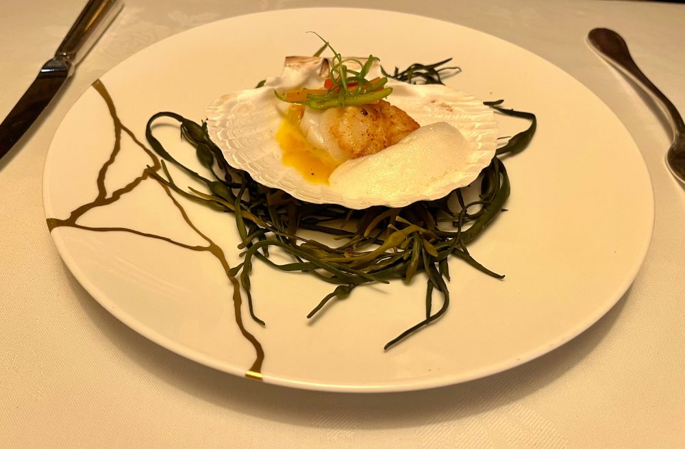 还有香煎深海干贝佐馥郁百香果,海的甘甜被果香轻轻包裹,清新的味道在舌尖徐徐展开。