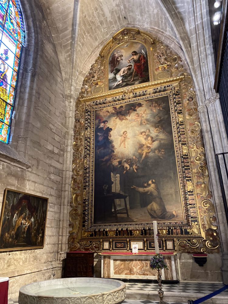 塞维利亚大教堂也称圣玛丽大教堂(Catedral de Santa María de la Sede),离犹太区不远。我们接着参观这个16世纪初完工的大教堂。它与毗邻的阿尔卡萨宫和印度群岛总档案馆一起,被列入联合国教科文组织的世界遗产名录。