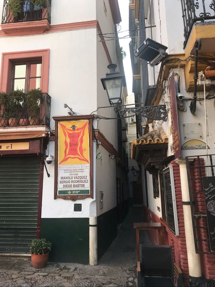 不知怎么,我们从宽恕之门(Puerta del Perdón)出了大教堂建筑群。 在摩尔人时代,这里曾是阿尔莫哈德清真寺的主要入口。也是热闹的老城区。我们有约一个半小时的时间,可在街上转悠一阵,找家饭店吃午饭。