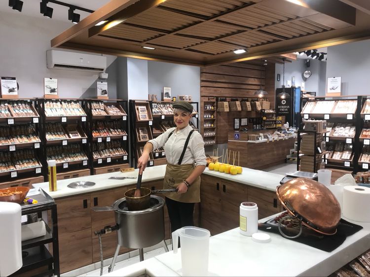 这是一家现制巧克力甜品店。