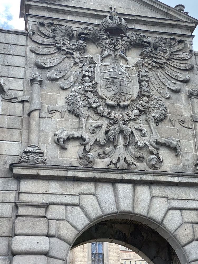 被门上巨大的托莱多纹章吸睛。据称,这是由查理五世授予的。纹章由带着盾徽的黑色的帝国双头鹰组成。盾徽被金羊毛勋章垂饰所环绕。