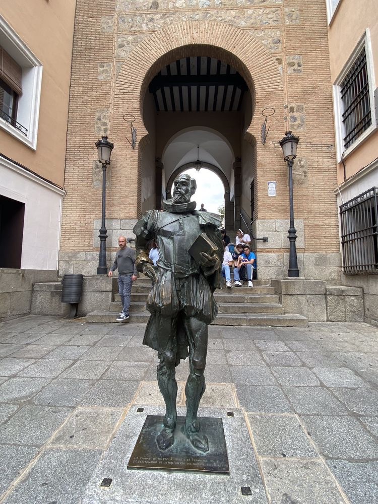 一出门,便看见《堂吉诃德》的作者塞万提斯(Miguel de Cervantes)的雕像。这是艺术家奥斯卡·阿尔瓦里尼奥·贝林松的作品,为纪念塞万提斯逝世400周年而建造。