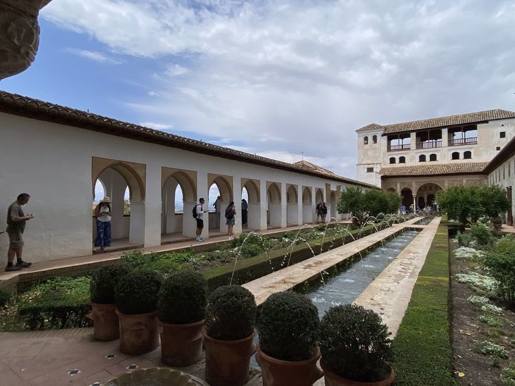 阿罕布拉宫的喷泉、水渠和水管道给我们留下了深刻的印象。你会惊讶发现,中世纪时,摩尔人已能像使用液压系统一样,满足水的需求。他们修建水渠,把水从山上引到了阿兰布拉宫。水渠流淌,将整座宫殿环绕一圈儿,为浴室、金鱼池以及庭院中的喷泉供水。水流又会沿着林荫道一路向下,往格拉纳达城流去。