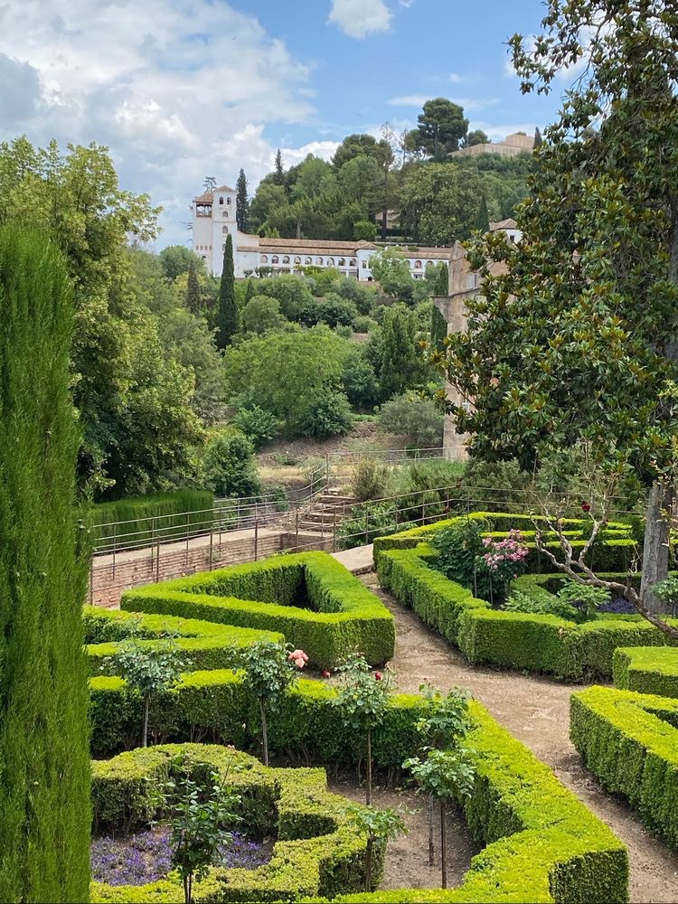 水的灌溉创造了“绿色阿尔罕布拉宫”。溪流喷泉常年潺潺不息,树林四季常青,果园和内外花园围绕着历史建筑群。