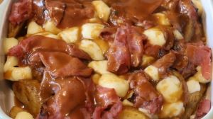 材料:1包冻薯条 (650g),1包Poutine肉汁粉(或棕色肉汁粉)(需要2杯肉汁),1袋凝乳奶酪 (200g),蒙特利尔烤肉 (可不加)