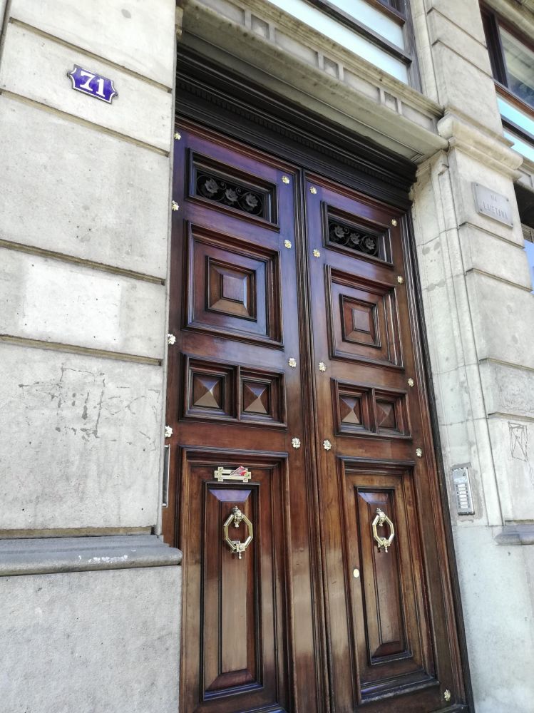 下了飞机,乘坐机场大巴直达市中心的加泰罗尼亚广场。根据地图标识,往东走300米,到一小十字路口,朝南再走20多米,酒店应该就到了。过了十字路口,南北方向走了两个来回,也没发现要找的酒店。询问街边店主,他指着一深色大门,说:“这个可能就是“。我抬眼望去,深棕色的两扇大门紧闭着,除了右上角孤零零的小牌”71“,没有任何其他标识。店主帮忙摁了左下角的门铃,厚重的木门吱呀呀地开了。走进门厅,灯光昏暗,没有一丝声息。这是一栋老式建筑,约莫7、8层高,中间是一部铁栅栏式的电梯以及环绕它的步行楼梯,两侧的二门也都紧闭着,似乎上着锁。我把拉杆箱交给太太,指着步行楼梯,说:“我上去侦察侦察”。太太抬眼望了望黑黢黢的上方,紧张地扯住了我的衣角。返回到大门外,又按了门铃,复述了酒店名,答曰:“上电梯,按2”。抬头再望望“71”号牌,心里嘀咕:“这地方怎么看都不像酒店,更与‘Fontanella Art Rooms’ 这高大上的店名相去甚远,倒有些像抗战时期汉奸李世群在上海掌控的‘76’号“。捣鼓了半天,老式电梯终于启动了,升至约莫5层,电梯停了。南侧的二门虚掩着,推开一看,酒店,准确地说,旅店,终于找到了!(当时在Booking.com 上订这家店时,看到的是价格不菲,评分不低,可能是位置好的缘故吧)。