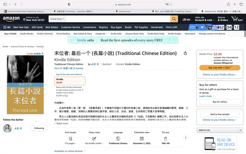 长篇小说《语义茂盛》中文繁体版在亚马逊全球电子图书市场发售。https://a.co/d/gi5qQBV這是一部當代中國知識分子題材的關於愛情、詩歌和永恆的長篇小說。作品從探討語言的意義到人類生命的價值和意義,以荷爾德林之詩為引,探究愛情與生命,愛情與永恆的命題。聲名卓著的國際語言學家陸可贊受冤屈坐牢,從受到國人高贊而落入受人恥笑的境地,作品探究命運與人生意義[