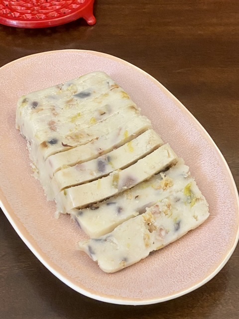 萝卜糕放些芹菜粒和山药粒,多了一些菜和纤维。