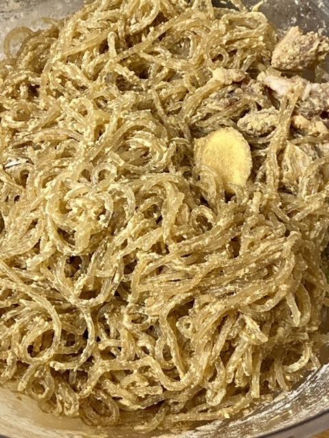 这些在一起,往里分批放玉米粉,一点点面粉。