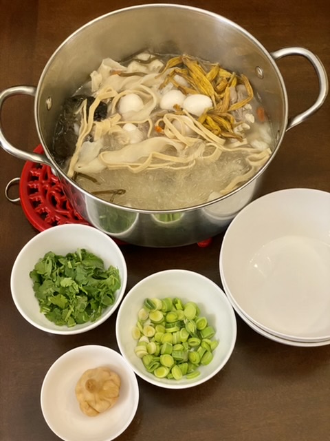 配料木耳煮软。黄花菜可以最后煮烩面里,它煮久会氧化,变黑,不好看了。