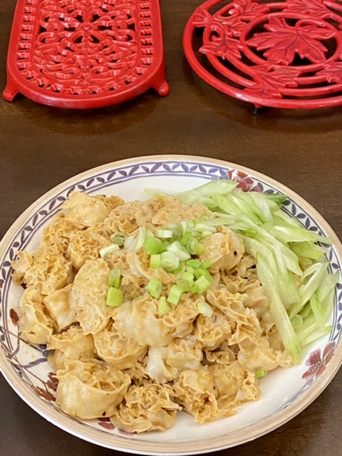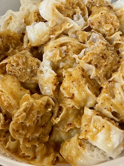 芝麻酱用香油懈开,加水(这个汁要多一些,所以加水),酱油,米醋,红油、花椒油,糖,盐,蒜水。