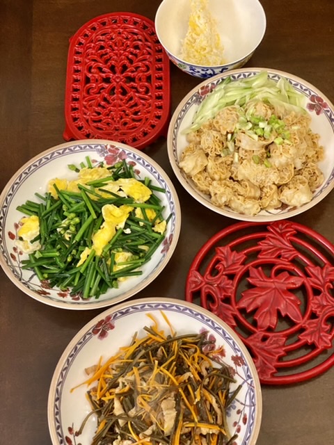 以前的盘子有乡土气息,配这几个菜有中原家乡味道。
